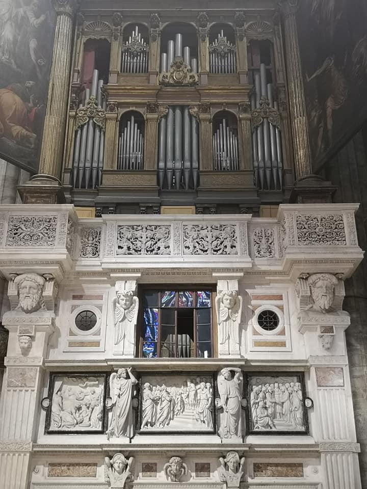 報了導覽團不用排隊入教堂內,52條大柱代表52個禮拜。主教的墓當然少不了,彩玻璃不及柱頂的雕刻宏偉。